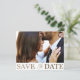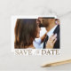 Esta elegante salvação do anúncio de data é a maneira perfeita de começar seus planos de casamento. Apresentando um modelo fotográfico e em negrito com a tipografia "Salvar a Data" em ouro metálico luxuoso e falso sobre fundo branco limpo, ele revela sofisticação e estilo. Personalize-o com seus próprios detalhes para criar um anúncio memorável para seu dia especial.