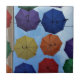 Um telhado de guarda-chuvas coloridos sob o céu limpo