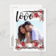 Um Boho Chic romântico e sem carinho Salve o design de Data armou sua foto favorita do casal. Rosas vermelhas e folhas se entrelaçam com sotaques vitorianos para criar três cantos do quadro. O amor está escrito em uma fonte aberta e arejada. A parte de trás da Data de Salvamento tem a data gravada na mesma fonte bonita, seu endereço de retorno e detalhes do casamento. Chic e a maneira moderna de compartilhar suas notícias!