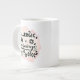Jumbo Alguns dias, uma xícara de joe de tamanho normal simplesmente não vai funcionar. Quando precisar de uma dose extra de cafeína, pegue a sua caneca de café extragrande de Zazzle. Vai acomodar um cheio de 20 onças de Venti. Perfeito para sopa, cereal, sorvete ou chili também! Esta caneca gigante apresenta uma alça em forma de C para um corte confortável. Dimensões: Altura: 4,5" Diâmetro: 3,9" Capacidade: 20 onças de micro-ondas e lava-louças Forte, de cerâmica Cumprir ou exceder os requisitos do FDA para o Designer de Segurança de comidas e bebidas Dica: Para garantir o impressão de alta qualidade, note que a área de design personalizável deste produto mede 4" alto x 10,5" de largura