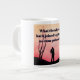 Jumbo Alguns dias, uma xícara de joe de tamanho normal simplesmente não vai funcionar. Quando precisar de uma dose extra de cafeína, pegue a sua caneca de café extragrande de Zazzle. Vai acomodar um cheio de 20 onças de Venti. Perfeito para sopa, cereal, sorvete ou chili também! Esta caneca gigante apresenta uma alça em forma de C para um corte confortável. Dimensões: Altura: 4,5" Diâmetro: 3,9" Capacidade: 20 onças de micro-ondas e lava-louças Forte, de cerâmica Cumprir ou exceder os requisitos do FDA para o Designer de Segurança de comidas e bebidas Dica: Para garantir o impressão de alta qualidade, note que a área de design personalizável deste produto mede 4" alto x 10,5" de largura