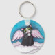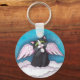 Até os gatos têm um anjo da guarda. Chaveiro de gata de anjo preto branco. Pintura original: acrílico na canvas 2008 Lisa Marie Robinson