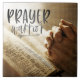 Azulejo cerâmico com citação inspiradora cristã retrata uma simples fotografia de mãos rezando em uma Bíblia aberta. Ele apresenta a legenda, "GUERRA DE PRAYER".