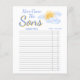 This charming Guess Who Game card features a smiling watercolor sun and blue clouds with the words "Here Come The Sons" in stylish typography.