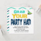 Convide pessoas para o grande porão deste ano com um convite editável que é muito divertido! Quando disser às pessoas para agarrarem seus chapéus de festa, é melhor acreditar que eles escutam! Obtenha mais pessoas para mostrar a qualquer evento com este convite distinto.