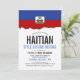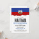 Uma bandeira haitiana escreveu um cartão de convite branco limpo para o próximo evento temático haitiano. Um item de excelente a ser usado para um evento de cozinha de comida ou churrasco de seleção de comida especial.