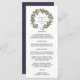 Nosso menu de casamento sofisticado apresenta seus pratos iniciais, principais e sobremesas em letras elegantes, com seus nomes circundados por uma grinalda botânica verde de folhas e frutas de inverno em aquarela que combina com nossa coleção de casamento Blueberry.