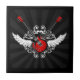 Azulejo customizável com o tema da música do rock and roll que caracteriza duas guitarra elétricas vermelhas com enfeites barrocos do estilo do wingd e do vintage.