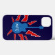 Um vetor de guitarra azul com raio vermelho e iniciais personalizadas