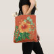 Uma Gumamela Flor Tote Bag com fundo laranja.