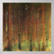 Impressão da pintura "Pine Forest II", de renome artista do simbolismo austríaco Gustav Klimt (1862-1918). O poster representa uma floresta de pinheiros austríaca nua nua nua nua, nua, durante o outono, mostrando troncos de árvores sem toplas e o chão da floresta. Há fortes influências vermelhas, marrons e verdes na pintura. c. Estilo 1901: Período de Simbolismo: Fase de Ouro