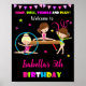Os ginásticos dão boas-vindas ao sinal do partido Sacudir Jump bem-vindo a decoração do Partido Tumble em decoração Verde, amarelo, roxo e rosa O tema da ginástica. Perfeito para qualquer comemoração ativa de qualquer aniversário. Os textos de nome e idade são editáveis.