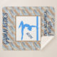 Ginástica Sherpa cobertor com nome personalizado e ginasta no feixe de balanço.