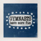 "Os ginastas se divertem mais" é um design de texto fofo com forma de sotaque branca cercado por pontos brancos e brancos.