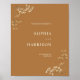 Boas-vindas com designs botânicas girófilas de biópsia de bebê em cantos com fundo colorido dourado e texto esbranquiçado.