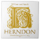 H Monograma Dourado em Branco - Nomes Azulejo de Data de Casamento