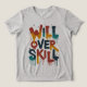 Aproveite o poder da determinação com nossa camiseta "Will Over Skill"! Apresentando um gráfico ousado e poderoso, este design celebra a força da pura força de vontade e do grito. Perfeito para aqueles que acreditam que a perseverança pode superar qualquer desafio, esta árvore serve como um lembrete diário de que às vezes, é o coração e a determinação que realmente fazem a diferença. Vista-o orgulhosamente e deixe seu espírito inflexível brilhar!