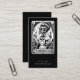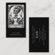 Um cartão de visita preto estilo tarot exclusivo, com estilo de cabelo estilista, com um esqueleto com ferramentas do estilista. Um estilo único com um toque de humor. Compra em quantidades maiores para um desconto de volume.