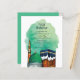 Esta design é adequada para felicitar amigos e família pela temporada Hajj A Santa Kaaba em Meca, Arábia Saudita, desenhada à mão com um fundo verde e a frase Hajj Mabroor escrita em uma letra distinta. e O texto de parabéns é totalmente editável.