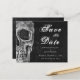 Cabeça de crânio gótica Salve a data vintage preto e branco Hallowding orçamento convite de casamento. Diversão, gótico assustador do Dia das Bruxas até a morte nos faz o roteiro da Parte. Imagem copyright Marg Seregelyi Fotografia.