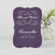 Um convite roxo "Vou casar-me com bruxas", dama de honra e madrinha de casamento de Halloween, feito profissionalmente pela Victoria of VG Invites. Um design de fundo roxo vintage com um recorte de colchete dá a este convite gótico uma sensação autêntica. Um fantasma divertido está pedindo um cartão projetado pela Victoria of VG Invites.