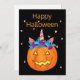 Engraçado Jack o Lanterna na coroa de flores com impressão de violeta azul-alaranjada colorida unicórnio.