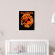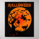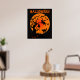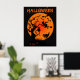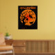 Halloween Haunted Place Poster. Legal poster a preto e laranja com um lugar assombrado. Uma árvore assustadora com uma coruja, uma bruxa sobre uma vassoura, morcegos, um gato preto e Jack o Lanternas compõem esta imagem de um lugar assombrado.