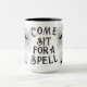 Venham ao SITE por um feitiço. Venham ao SIP por um feitiço. Bruxas, chapéu, calçados, e meias listradas com poeira de feitiço roxo a balançar. Divertido e moderno halloween ou caneca mística.