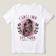 Camisa Funny Tri-Blend do Café de Halloween Apresenta o texto "Cold Like My Soul Coffee Club" na tipografia moderna escrita com um esqueleto segurando uma taça de café dentro a uma coroa floral. Perfeito para festas de Halloween e comemorações. Criado pelo Evco Studio www.zazzle.com/store/evcostudio