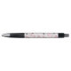 Caneta de Halloween com fantasmas cor-de-rosa e abóboras com expressões lúdicas, contra um fundo macio e tonto.