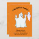 Bonito convite para fantasmas de Halloween e Munchy. Há um padrão de abóbora sobre fundo laranja no lado de trás. Todos os textos e números estão prontos para serem personalizados.