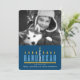 Mande saudações a Chanucá para a família e amigos com este design moderno personalizável. O trabalho de arte apresenta as palavras "Feliz Chanucá" desenhadas para se assemelhar a uma menorah com velas brilhando intensamente - cada letra representa uma das velas e a palavra "Feliz" se torna a vela central. Personalize-o adicionando sua própria saudação e nomes usando os modelos de texto fornecidos. Complete a design substituindo a foto de amostra pela foto da sua família. O reverso é um azul que combina com os modernos círculos brancos e pontos que fazem alusão à queda da neve.