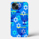 Esta capa de telefone tem um design de menorras e estrelas em Hanukkah sobre fundo azul. Excelente para a estação.