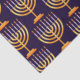 O judeu Hanukkah está de folheto com menorah e velas em fundo azul.