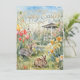 This greeting card showcases a watercolor illustration of a spring flower garden, gazebo, and two rabbits. It includes a sophisticated gold holiday greeting. The flat holiday card features an Easter message on the reverse, along with a signature line for personalization. Specifically designed for family use, this Easter card allows for customized text. This versatile template image can be applied to other products as well.