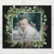 This Happy Holidays Photo Wreath Greenery Sparkling Wine Label features a photo of your choice surrounded by a wreath with holly with berries, pine branches, pinecones, and eucalyptus, with your names and year. This sparkling wine bottle label is a perfect addition to your Christmas celebration party