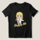 Feliz Camisa de Mistura Tripla Mulher Chibi-Anime, de cabelos amarelos.