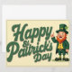 Charming St. Patrick’s Day design featuring a cute leprechaun in classic green attire, smiling and pointing upward beside bold festive lettering. A playful and retro-inspired artwork perfect for Irish celebrations and seasonal decor.