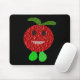 Um desenho fofo de um tomate sorridente em um fundo preto.