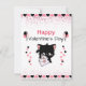 The front showcases a lovable black kitten holding a Valentine envelope, surrounded by floating hearts and playful Valentine accents. The bright greeting “Happy Valentine’s Day” instantly sets a joyful tone that’s perfect for classmates, friends, and teachers.
