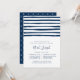Os convites à comunhão sagrados da costa Elegante apresentam uma fronteira superior de faixas desenhadas à mão em azul de cobalto náutico. Personalize com seus primeiros detalhes de comunhão abaixo em uma mistura chic de blocos, serifas e tipfaces escritas à mão. Inclui espaço para a cerimônia religiosa e a festa ou celebração a seguir. Convites invertem para um padrão de pequenas âncoras brancas em azul marinho.