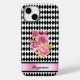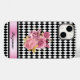 Este monograma apresenta um padrão de harlequin preto-e-branco delicioso com um buquê adorável de flores, incluindo rosas e um arco de ouro. Seu nome é impresso em um script preto sobre uma fita rosa simulada, aparada em preto. Digite seu nome na seção Personalizada e ele será impresso no design.