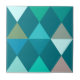 Azulejo cerâmico num padrão moderno de Harlequin do século Médio de triângulos empilhados que formam formas de diamante - cores do mar de tartaruga, aqua, creme e neutrais moles num fundo azul-lacre