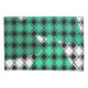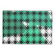 Esta fronha tem um design moderno do século médio de diamantes negros sólidos traços de diamante preto dentro com triângulos em tons de marisco verde sob eles, todos num campo de branco.