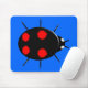 Um pente de mouse com uma pata-rosa preta com quatro manchas vermelhas irregulares nas costas, seis pernas e duas manchas brancas que se parecem com os olhos na frente da cabeça. Originalmente uma espécie asiática que vive e cria na Europa e na América. Foi colocada sobre um fundo azul, mas também parece excelente em relação a outros fundos de cor. Você pode alterar a cor de fundo e outros aspectos do design clicando no botão personalizá-lo.