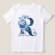 Confira este gráfico de Ravenclaw baseado no feitiço de fazer água Aguamenti. Este apresenta um corvo azul em pé na frente de uma letra "R" gigante com o nome "Ravenclaw" escrito abaixo.