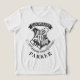 Una a magia de todas as quatro casas com esta camiseta clássica personalizada de Hogwarts! Com o icônico brasão da escola em um estilo de desenho atemporal em preto e branco, esta camiseta apresenta o Leão, a Cobra, o Texugo e a Águia ao redor da letra central 'H'. Personalizada com o nome da criança em texto preto negrito abaixo do lema da escola, é uma adição encantadora ao guarda-roupa de qualquer jovem bruxo. Seja esperando a carta de aceitação ou indo para a aula, esta camisa celebra o encanto de todo o Mundo Bruxo.