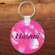 Chaveiro de design, cor-de-rosa-claro e flor branca, um impressão floral havaiano de estilo vintage e texto do Havaí, o 50º estado dos EUA