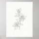 Impressão Hawthorn Sketch. Impressão de desenho de lápis em fundo creme. Mínima primavera de arte, flor de nascimento.