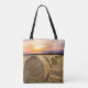 Baldes de feno redondos no campo na impressão do pôr do sol na bolsa de tote. Veja mais itens ocidentais na Loja Rodeo Days.